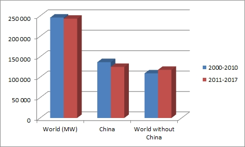 However we must point out that annual installation of hydropower is rapidly declining due to variety of factors, notably: