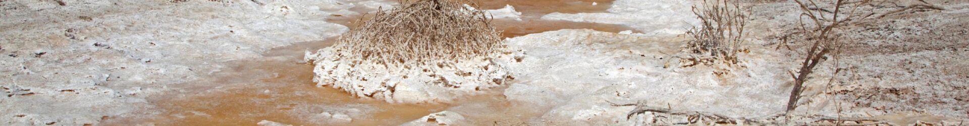 Salt deposits in the Karakum desert, Turkmenistan, where experts say the Karakum Canal has resulted in land being salinised and seasonally waterlogged, making agriculture impossible (Image: Alamy)